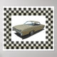 Digitally enhanced image of a gold coloured 1961 Oldsmobile Super 88 2 door hardtop within a dimensional black and white chequered frame.