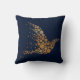 Elegant designer accent throw pillow done in a midnight blue, with lovely graphics of a golden abstract bird made up of dots. Customise this lovely pillow with your own text or leave as is for a great room accent or gift idea.
