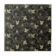Golden Abstract Floral on Black Background Ceramic Tile by Gerson Ramos..
