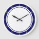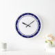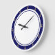 Golden anchors mark the hours on this white and navy blue nautical clock design.