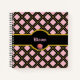 Elegant golden and black diamond pattern on pink background Notebook. Bloom text can be customised.