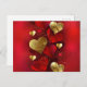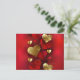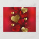 Vertical composition of red and gold, textured valentines made of foil and brocade on red background. Valentines day decorations.