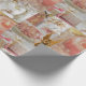 This collage design features a golden angel, a white deer, and various Christmas decorations in hues of gold, pink and white for the holiday season.