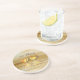 Coaster with my artwork of two gold colored hearts floating on water. Customizable text says "50 Years".