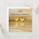 50th golden anniversary invitation with two golden hearts floating on water. Customise the sample text on the back with your own information for your event.