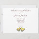 50th golden anniversary invitation with two golden hearts floating on water. Customise the sample text on the back with your own information for your event.