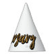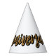 These party hats feature the words "Anniversary" in a unique print font with gold letters black outline. All paper hats have an attached elastic string printed in full vibrant colours made in the USA has a Minimum of 12 order requirement.