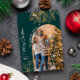 Golden Arch Green Boho Photo Holiday Minimalist Christmas Invitation card