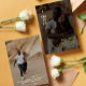 Elegant gold foil arrow wedding invitation personalised with one photo on either side. Gold foil wedding invitation with your wedding date in bold numbers framed by elegant arrows. Modern typography wedding invitation with gold foil text printed atop your photo with a transparent dark layer making the text pop.