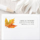 A unique fall themed set of address labels featuring a painted illustration of a golden autumn leaf.
