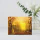 Postcard featuring John Atkinson Grimshaw’s painting Golden Autumn (1836-1893). An autumnal road is strewn with fallen leaves. A Victorian woman stands next to a gate barring a mansion. Yellow and orange light paint the sky above skeletal trees. The perfect gift for fans of Romanticism and Victorian England and for those with darkly inclined sensibilities.