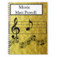 Golden background with black music bar with notes design can be personalised with student's subject and name. Fancy notebook will command attention and give encouragement with music.