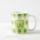 A lucky monogram balloon Coffee mug, this St. Patrick's themed design features fun and colourful green four leaf clovers on a white background. In the centre is a place to insert your monogram initial. Personalise yours today!