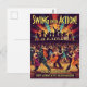 • This energetic digital illustration captures the excitement of a 1940s big band dance night at the Golden Ballroom, with a crowd of people dancing to a live band.