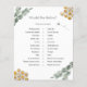 Bridal shower game card featuring a watercolor bees and eucalyptus. A fun way to interact with shower guests.