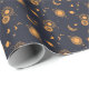 Golden black celestial sun moon galaxy pattern wrapping paper