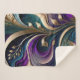 Golden Bloom - Deep Purple and Teal Abstract Flora Sherpa Blanket