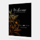 The design features elegant golden blooms, foliage, and a simple "Welcome" script.
