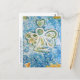 The painting is of a white and gold angel with green accents surrounded by blue swirling sky and golden hearts. The angels has a white heart instead of a halo above the angel's head. Customise this card and make it personal with your own text.