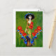 Golden Blue Antique Catrina Over Green Washed Boho Postcard