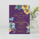 Golden Blue floral 25th wedding anniversary Invitation
