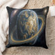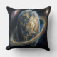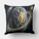 Golden Blue Planet with RIngs Cushion