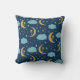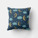 This is golden crescent moon with flowers and blue clouds, stars on navy blue background. It's great decorative throw pillow for your home