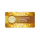 Extend the 50th anniversary celebration with a label that celebrates this achievement in style. Faux golden bokeh images sprinkle down against a golden gradient background. The main text is highlighted in an ornament held on by a gold ribbon image. Add a name and address in the ribbon area. Available in alternate colours with matching products.