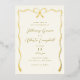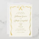 A beautiful and formal wedding invitation featuring gold foil elements of a ribbon and bow. Perfect for a classic wedding with a modern and trendy twist. Gold foil details create a pretty ribbon border with a vintage style.