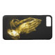 Gold to bronze praying hands stand out on this black background iphone 6 case