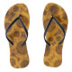 These fun flip flops feature an abstract design of golden brown steampunk circles with a distressed, textured, grunge feel. The pattern also brings to mind a giraffe!
