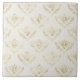 Ceramic tile with an elegant pattern with gold coloured bumble bees in a repeating pattern on a cream coloured background.