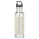 Water bottle with an elegant pattern with gold coloured bumble bees in a repeating pattern on a cream coloured background.