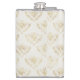A flask with an elegant pattern with gold coloured bumble bees in a repeating pattern on a cream coloured background.