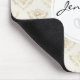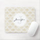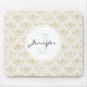 A mouse pad with an elegant pattern with gold coloured bumble bees in a repeating pattern on a cream coloured background.