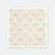 Paper napkins with an elegant pattern with gold coloured bumble bees in a repeating pattern on a cream coloured background.