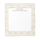 A notepad with an elegant pattern with gold coloured bumble bees in a repeating pattern on a cream coloured background.