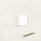 Sticky notes with an elegant pattern with gold coloured bumble bees in a repeating pattern on a cream coloured background.