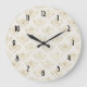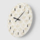 A clock with an elegant pattern with gold coloured bumble bees in a repeating pattern on a cream coloured background.