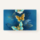 Composition of flying, jewelry, gold and dark butterflies on textured jewelry background. Golden butterfly.