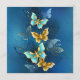 Composition of flying, jewellery, gold and dark butterflies on textured jewellery background. Golden butterfly.