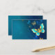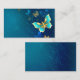 Flying gold, jewellery butterfly on blue textural background. Design with butterflies.