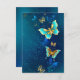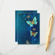 Flying gold, jewellery butterfly on blue textural background. Design with butterflies.
