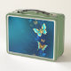Golden Butterflies on a Blue Background Metal Lunch Box