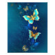 Flying gold, jewellery butterfly on blue textural background. Design with butterflies.