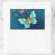 Golden Butterflies on a Blue Background Rectangular Sticker