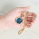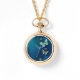 Flying gold, jewellery butterfly on blue textural background. Design with butterflies.