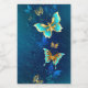 Flying gold, jewellery butterfly on blue textural background. Design with butterflies.