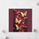red blossoms. The butterflies, with their detailed wings, appear to flutter amidst the floral arrangement.