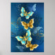 Composition of flying, jewelry, gold and dark butterflies on textured jewelry background. Golden butterfly.